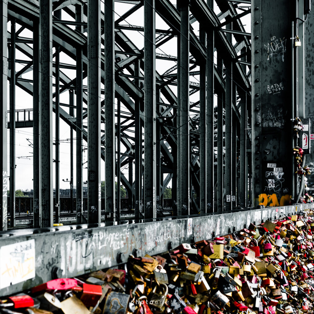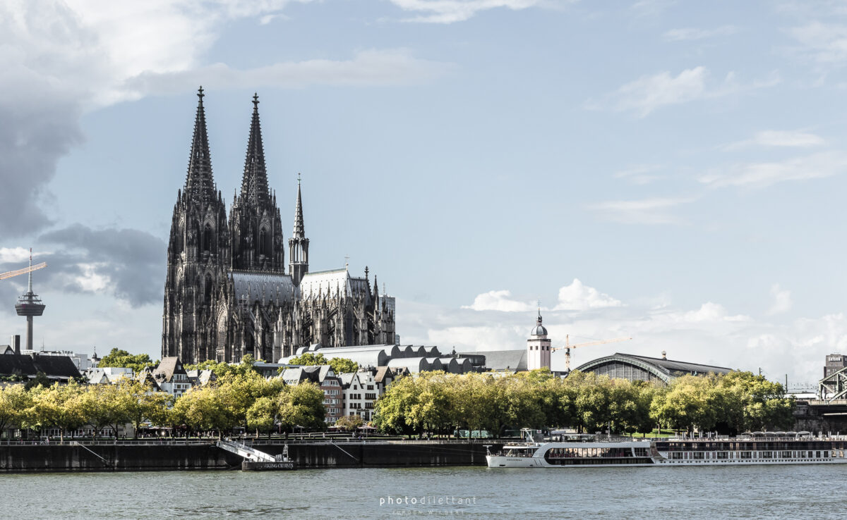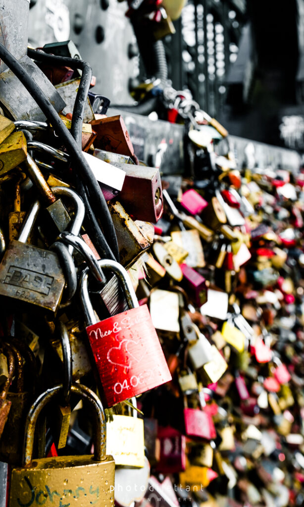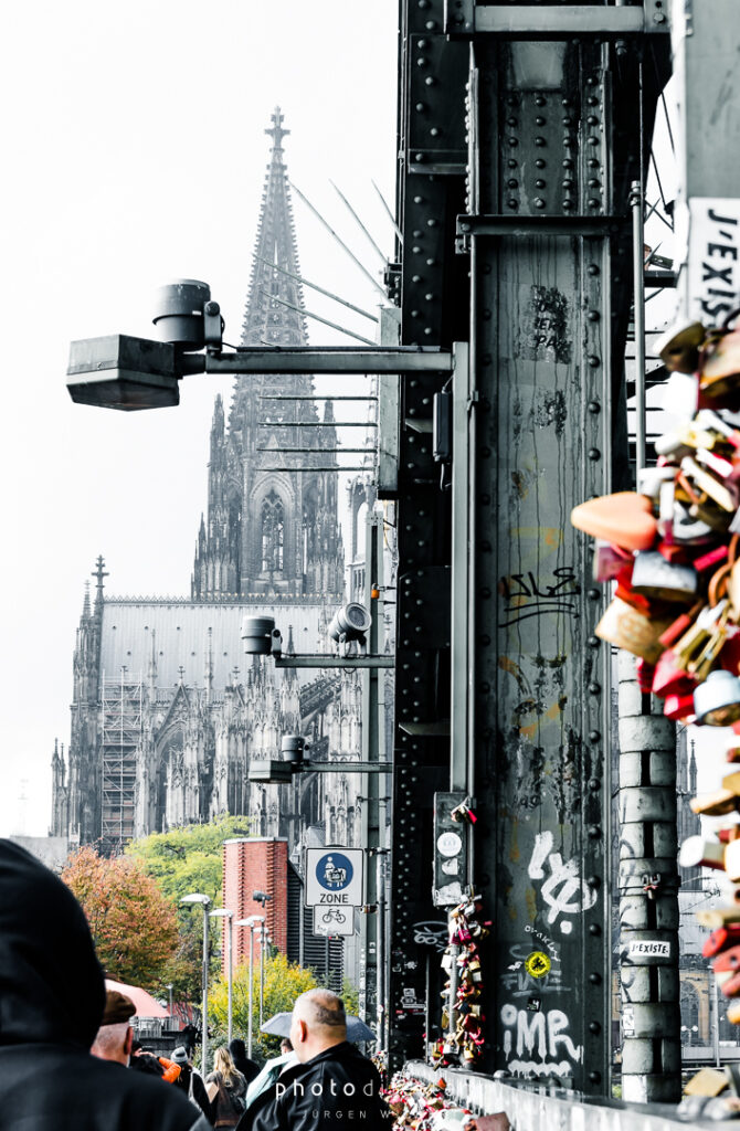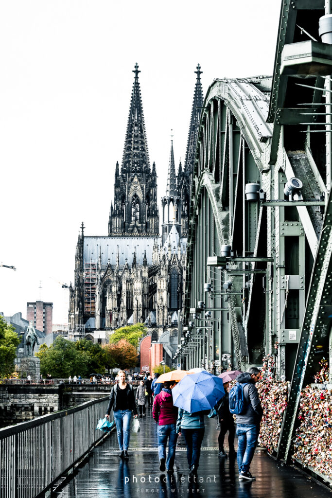 Im dritten Teil der Fotoreihe aus Köln geht es vom Dom über die Hohenzollernbrücke auf die andere, die richtige Rheinseite. Auf der Brücke geht es vorbei an unzähligen Liebesschlössern, ihre Zahl wird mittlerweile auf etwa 500.000 und mehr geschätzt, so genau weiß das niemand. 2018 wollte die Deutsche Bahn die Schlösser zum Schutz der Brückenkonstruktion entfernen lassen, ließ sie dann aber doch hängen. Das zusätzliche Gewicht der Schlösser stellt für die Brücke wohl keine Gefahr da. Angekommen auf der anderen Seite ergeben sich dann auch ein paar schöne Panoramablicke auf die Kölner Altstadt. Sieht dann doch gar nicht so schlecht aus…