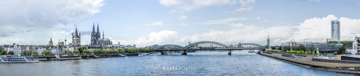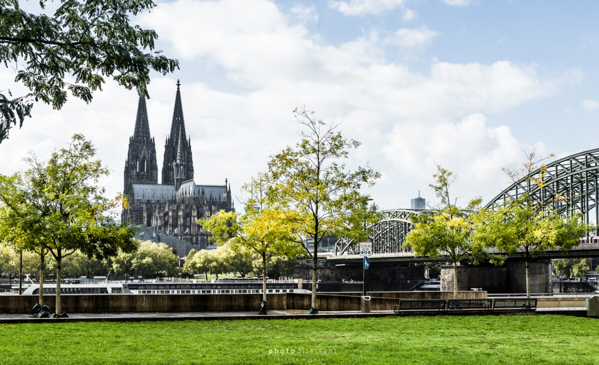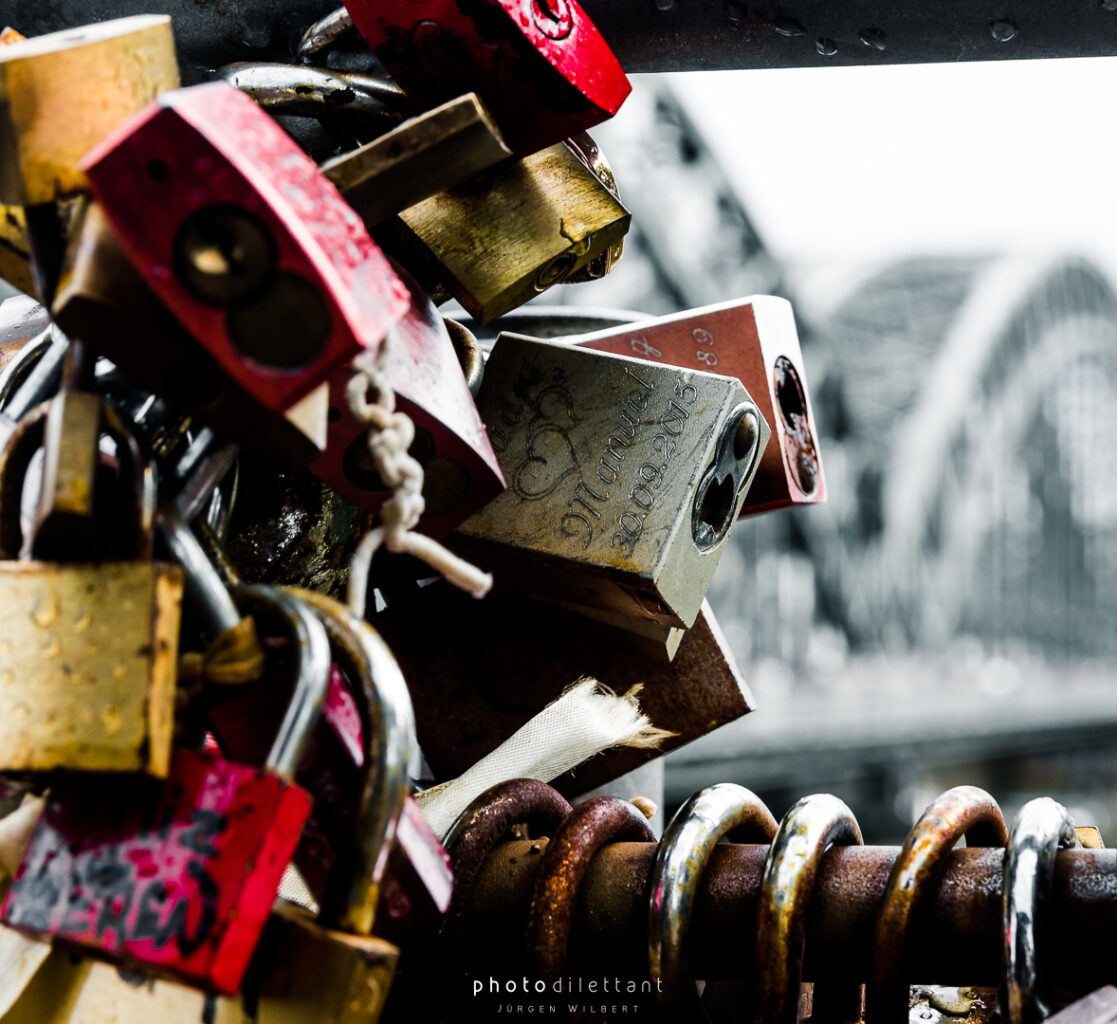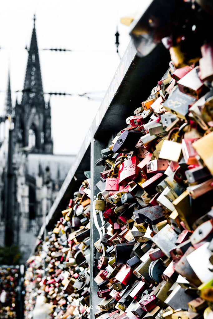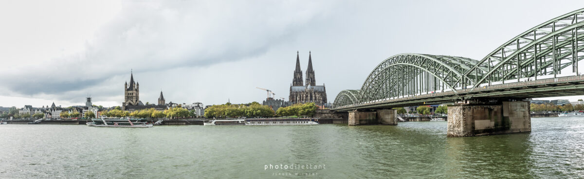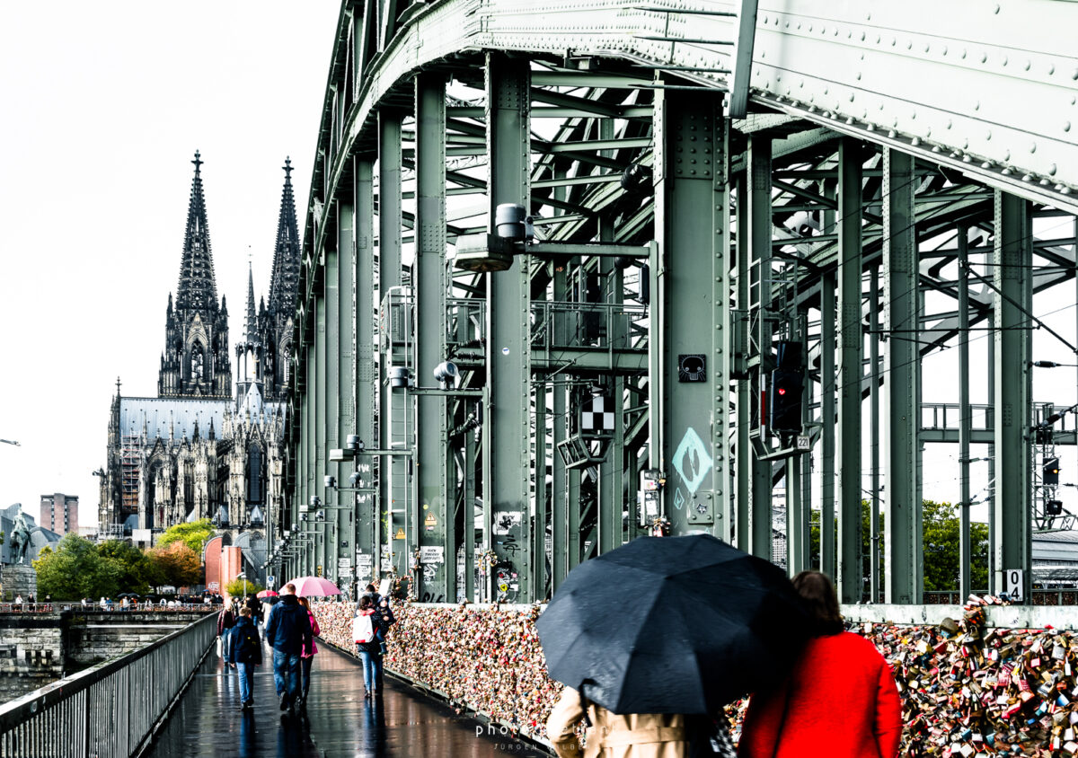 Im dritten Teil der Fotoreihe aus Köln geht es vom Dom über die Hohenzollernbrücke auf die andere, die richtige Rheinseite. Auf der Brücke geht es vorbei an unzähligen Liebesschlössern, ihre Zahl wird mittlerweile auf etwa 500.000 und mehr geschätzt, so genau weiß das niemand. 2018 wollte die Deutsche Bahn die Schlösser zum Schutz der Brückenkonstruktion entfernen lassen, ließ sie dann aber doch hängen. Das zusätzliche Gewicht der Schlösser stellt für die Brücke wohl keine Gefahr da. Angekommen auf der anderen Seite ergeben sich dann auch ein paar schöne Panoramablicke auf die Kölner Altstadt. Sieht dann doch gar nicht so schlecht aus…